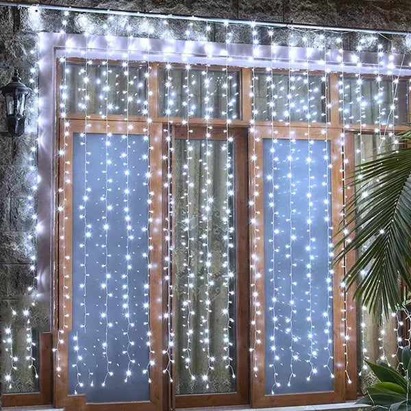 Led dekorativna BELA zavesa 3x3m postavite je preko tapiserije, zavese, staklenih klizna vrata, na običnom zidu ili čak kao osvetljeni zid izmedju soba, možete je koristiti tokom cele godine čak i posle praznika.