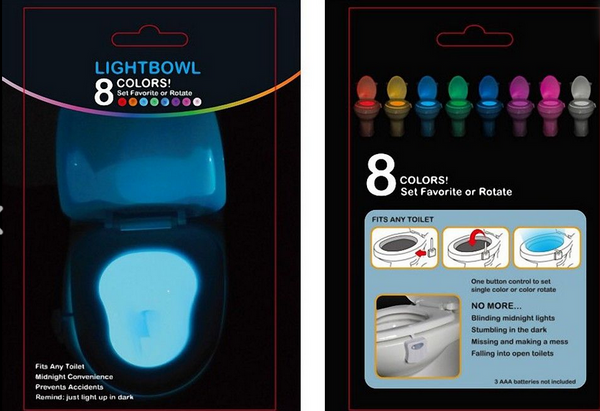 Želite WC sa noćnim osvetljenjem? Nema više zaslepljujućih noćnih svetala jer to vrlo lako može biti rešeno ovom lampom. Ova LED lampa je idealna za Vas. Može menjati čak do 8 boja. Lampa se automatski uključuje jer ima senzor pokreta. Pali se isključivo kada je prostorija u kojoj se nalazi mračna tako da pored senzora pokreta ima i senzor svetlosti. Napaja se sa 3 AAA baterije.