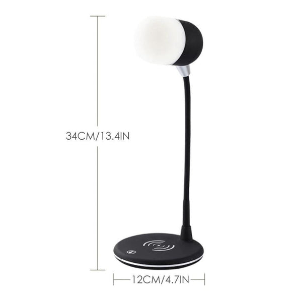 Ova lampa ima integrisan zvucnik koji se putem blututa povezuje sa vasim telefonom, takodje ima i bezicni punjac, sto ce vam dosta olaksati.