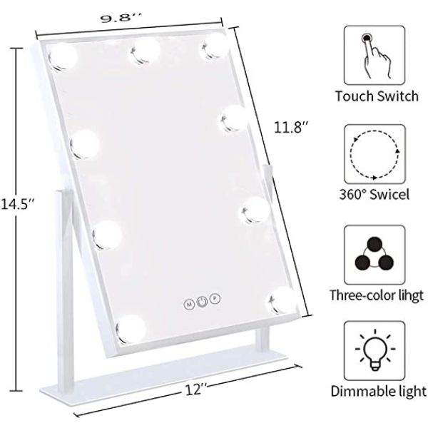 - Klasično holivudsko osvetljeno ogledalo za suštinu: dizajn sijalice u holivudskom stilu pruža čistu, svetlu refleksiju i omogućava vam da dobijete najprirodniju nanošenje šminke, čak i noću, savršeno za nanošenje šminke u bilo kom okruženju, kućnom ili profesionalnom