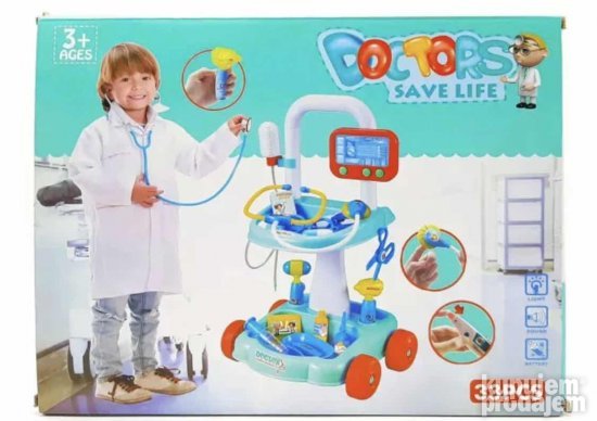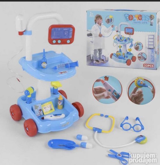 Дечији лекарски сет са светлосним и звучним ефектима је заиста забавна и истовремено едукативна играчка за дечаке и девојчице. Од детињства дете учи да покаже бригу и саосећање према другима тако што организује медицинске завере за играње улога. Комплет са постољем ће помоћи да се открије машта као и да се дете упозна са радним алатом доктора. Комплет за игру комплет: стетоскоп налепнице кутија медицинска плоча пинцета шприц на опругу маказе флаша катетер са цревом наочаре чекић 2 таблете термометар значка 4 точка 2 постоља за сто цев 3 делови кардиограм нога стола причвршћивачи за капаљку.