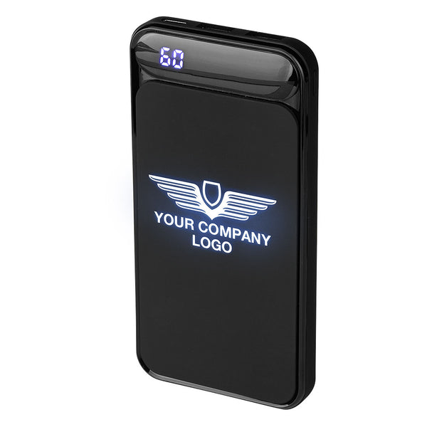 Pomoćna baterija za mobilne uređaje kapaciteta 10.000 mAh, sa LED panelom, gumiranom površinom i LCD ekranom, u poklon kutiji