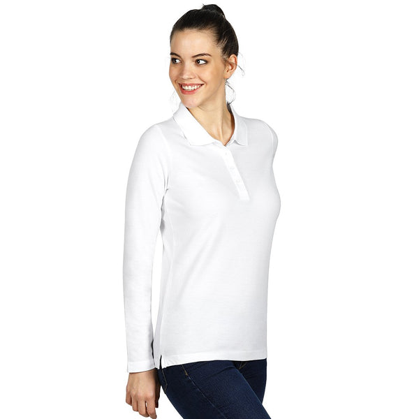LINDA, ženska pamučna polo majica dugih rukava, bela