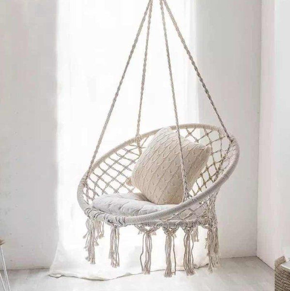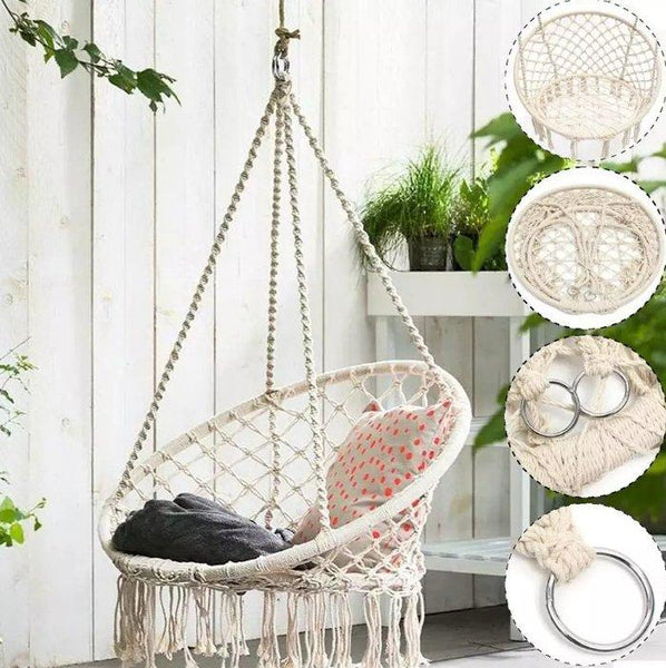 Veoma kvalietna, visoko otporna, izuzetno atraktivna viseća ljuljaška, pogodna za odrasle i decu, ispletena od prirodnog, pamučnog kanapa. Plastificirana metalna armatura je ispod kanapa i garantuje postojanost. Vrlo udobna. Pogodna za unutrašnju i spoljnu upotrebu. Metalne alkice za kačenje.