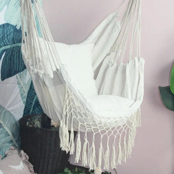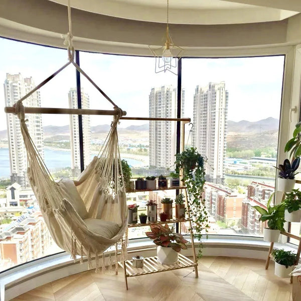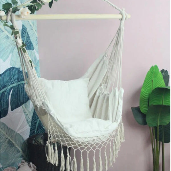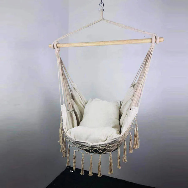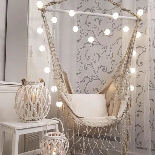 Viseca ljuljaskaViseća ljuljaška nudi divno utočište za sedenje, opuštanje i ugodno ljuljanje. Viseća korpa je čvrsto pričvršćena za drveni štap tako da se može okačiti na drvo, drvenu gredu itd.