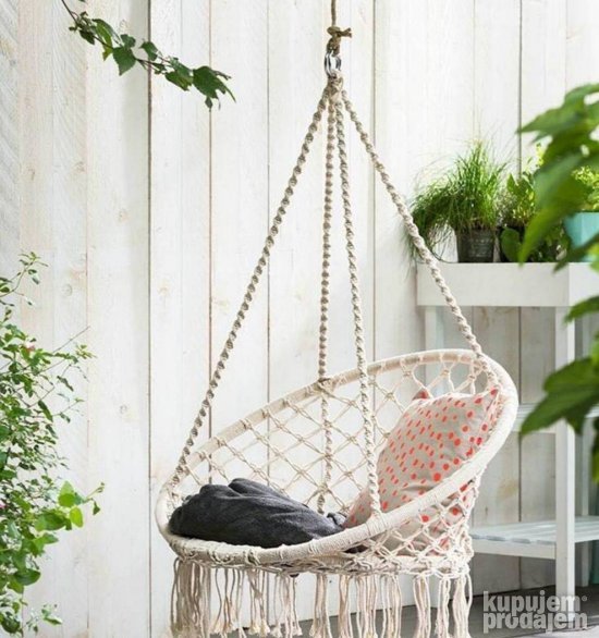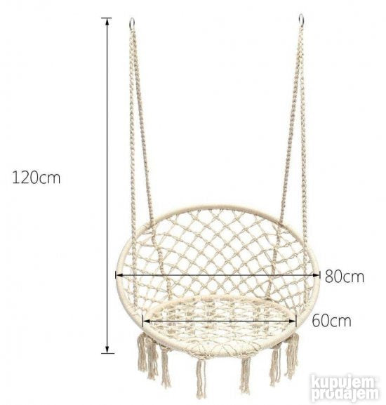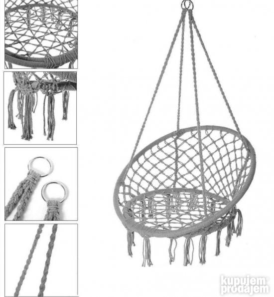 Ljuljaška je napravljena od 100% ručno rađenog pamuka. Klasični dizajn u oblik mreže pruža maksimalnu udobnost dok su detalji u modernom i prefinjenom stilu. Užad su napravljene od jakog i debljeg pamuka omogućavajući da ljuljaška može da podnese težinu do 100kg. Čelična cev je prečnika 28mm sprečava deformaciju stolice i obezbeđuje da ljuljaška može da izdrži težinu.