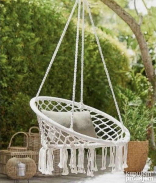 Lagano pamučno pleteno sedište prilagođava se obliku tela. Robusna i izdržljiva konstrukcija idealna za opuštanje i isključivanje. Prikladna za spoljašnju i unutrašnju instalaciju.   Ukrasne rese u donjoj strani. Ušteda prostora bilo gde da se postavi. . .