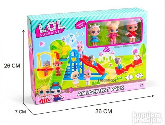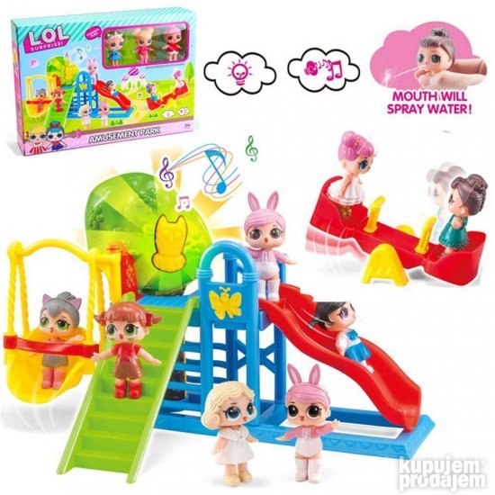 Obradujte Vaše mališane zabavnim parkom sa čak TRI LOL lutkice 2 tobogana i MNOGO zabave! Dovoljno je veliki park da mogu da pozovu i svoje prijatelje da se igraju sa njima i naprave pravi zabavni park!