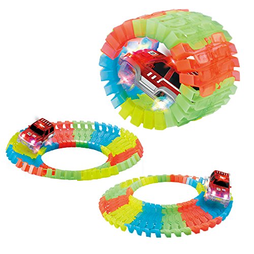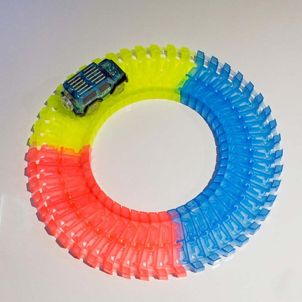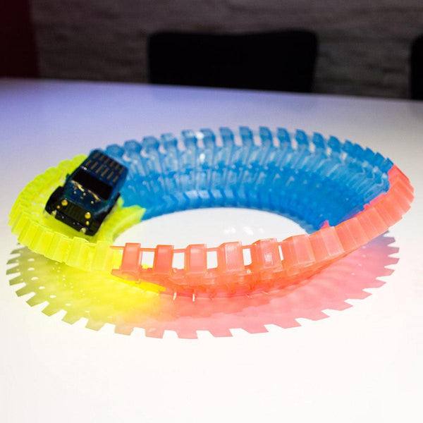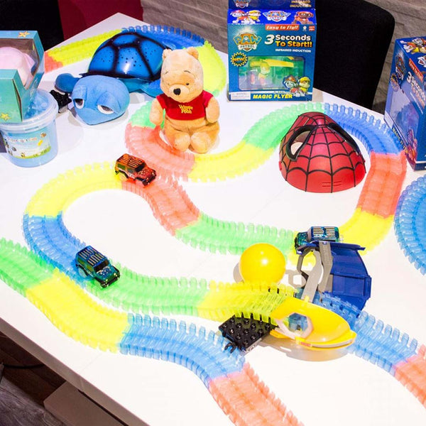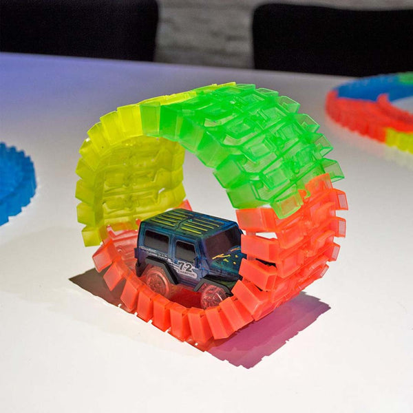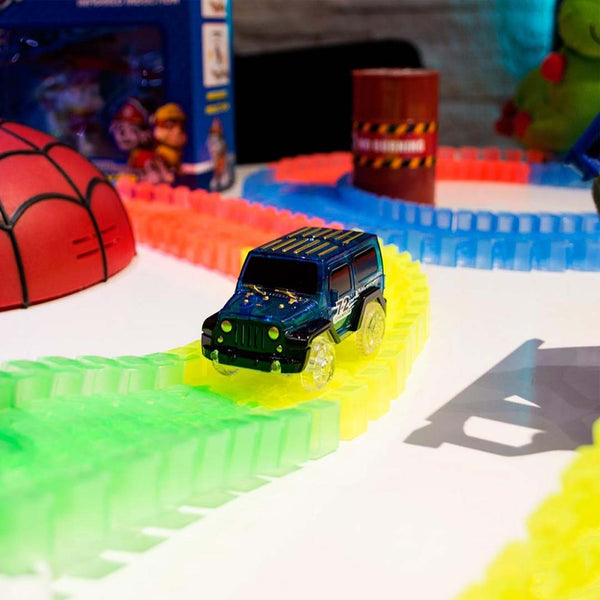 Sastavite stazu sa fantastičnim krivinama za ludu vožnju, dodajte most, X raskrsnicu, saobraćajne znakove i aktivirajte automobile, ugasite svetlo jer autići poseduju LED svetlo koje će dodatno ulepšati stazu.