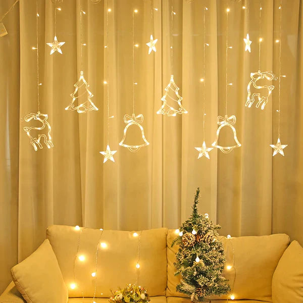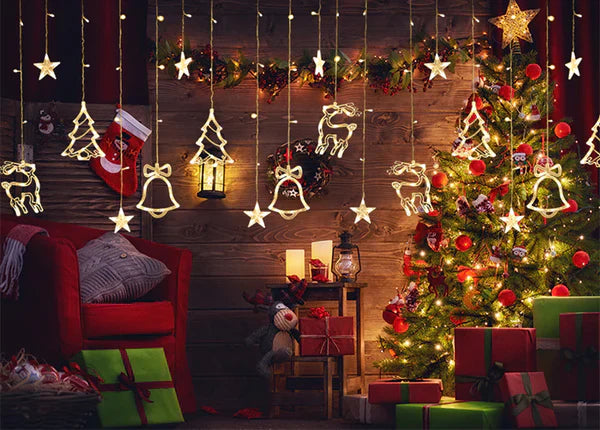 Ova fantastična LED svetlosna zavesa sadrži božićno drvce,zvono i zvezdice (različitih veličina) koje prelepo sijaju, dajući Vašim zimskim noćima nebeski sjaj.