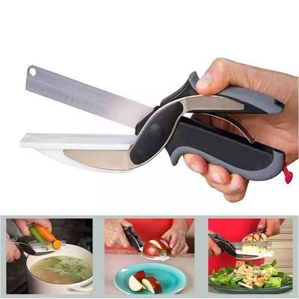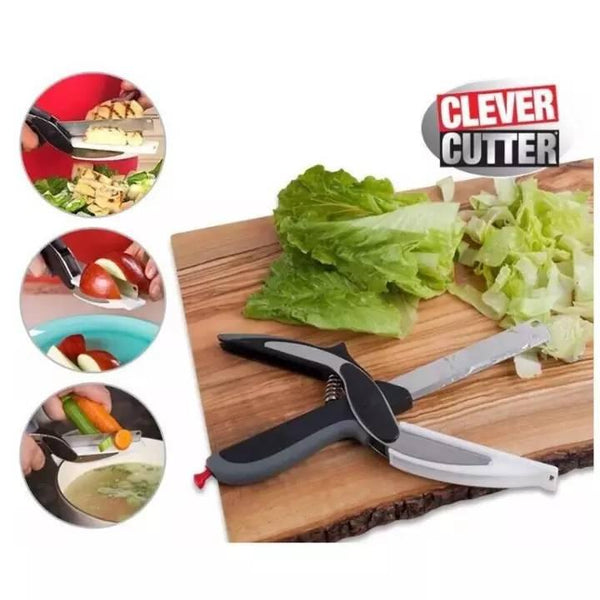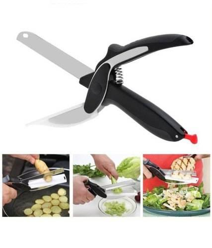 Clever Cutter makaze i nož 2 u 1 su najbolje sredstvo za sečenje voća, povrća, mesa, peciva i svega drugog u kuhinji bez angažovanja mnoštva alata , bez prljanja i nepotrebnog rasipanja po kuhinji, bez ostataka na sve strane.