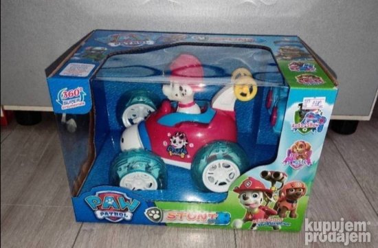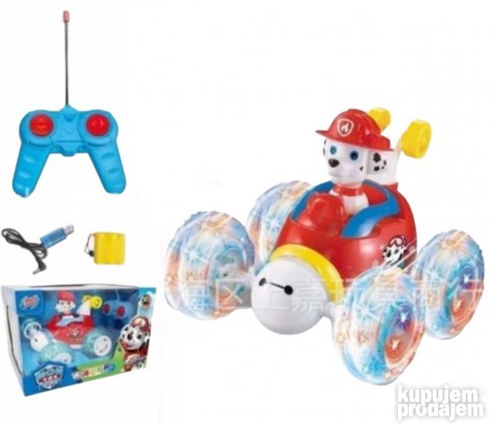 Patrolne Sape (Paw Patrol) auto na daljinsko upravljanje. Ima zvucne i svetlosne efekte (muzika i 3D svetla). Moze da ide u svim pravcima i pritiskom na dugme prednji deo automobila se rotira (tumbling).