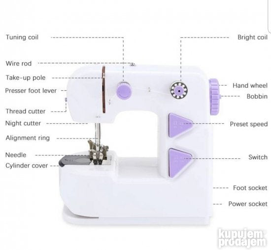 Nožna pedala noćna lampa kućna električna šivaća mašina za šivanje Karakteristike: 1. Ova kućna mini stona šivaća mašina je laka za rukovanje i može se koristiti za popravku šivenja i ručno uradi sam pogodna za početnike u šivenju ili dece koja uče da šiju. 2. Elektro -galvanizirana metalna stopica je delikatna glatka jaka i izdržljiva   šavovi su čvrsti. 3. Funkcija samonavijanja i dizajn rezanja niti omogućavaju mašini da automatski namotava i reže niti štedeći vreme i smanjujući poteškoće u radu. 4. Osvetljujuća lampa je opremljena da vam pomogne da šijete noću ili u slučaju nedovoljnog prirodnog svetla smanjujući umor očiju. 5. Spoljna pedala vam omogućava da koristite i ruke i noge što olakšava rad. 6. Sto za proširenje može se koristiti za rukovanje većim predmetima kao što su zavese haljine lutke farmerke itd. Sivaća mašina je mala i lagana i ne zauzima previše prostora što je zgodno za šivenje i popravku na relativno malim mestima.