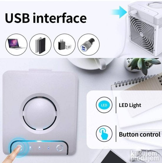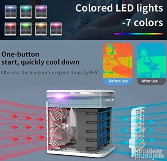 Inovativni vazdušni hladnjak】 Mini klima uređaj ima 3 opciona intenziteta vetra i lopatice ventilatora podesive za 90°. Jedinstvena tehnologija hlađenja raspršivanjem u kombinaciji sa ledenom vodom može postići bolji i brži efekat hlađenja. U poređenju sa tradicionalnim ventilatorom mini klima uređaj može da obezbedi vlažan i hladan vazduh u vaš lični prostor pritiskom na dugme. 【Šarena LED svetla】Ugrađena LED svetla u 7 boja mogu se menjati po želji. Meko noćno svetlo u kutiji ne samo da može stvoriti romantičnu atmosferu. Dodavanje malo aromatičnog ulja u vodu takođe može poboljšati san. Možete ga isključiti kada vam nije potreban i nastaviti da uživate u hladnom povetarcu nakon što ugasite svetlo. 【Najnoviji filter】Novi filterski element koristi nove materijale i ima snažan kapacitet za skladištenje vode. Odvojivi i čisti filter sa visokim vlaknima nakon antibakterijskog tretmana i tretmana protiv plesni ima jaču otpornost na prašinu i ponovnu upotrebu što može efikasno sprečiti prašinu i bakterije učiniti vazduh svežijim i omogućiti vam da dišete zdravo i slobodno. 【Ušteda energije i zaštita životne sredine】Rezervoar za vodu se može koristiti neprekidno 5 sati svaki put! Nakon uključivanja mašine ona radi maksimalnom snagom 30 minuta a zatim se automatski prebacuje u režim za uštedu energije. Metoda vodenog hlađenja ne sadrži nikakve štetne hemikalije. Niska potrošnja energije za smanjenje računa za struju što je potpuno pogodno za naš nisko-karbonski način života. 【Prenosni vazdušni hladnjak】Hladnjak klima uređaja je povezan za rad preko USB kabla. Mala veličina i odvojivi dizajn mogu vam pomoći da pomerate hladnjak vazduha između različitih prostorija. Bez buke bez zagađenja napredna tehnologija mali prostor jednostavan za rukovanje. Veoma pogodan za kancelarije domove i bilo koje mesto opremljeno USB portom za punjenje