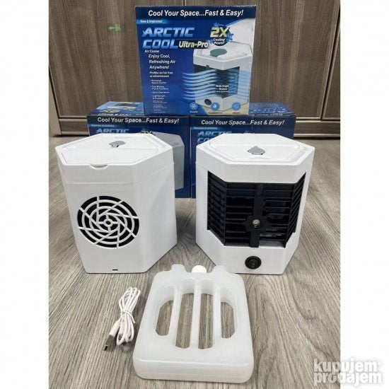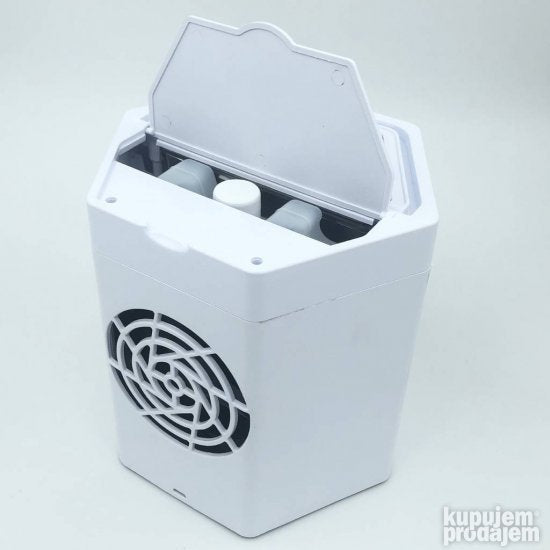 Mini klima na USB/Prenosivi klima uredjajRashladite se bilo kad i bilo gde. Ovaj inovativni klima-uredjaj koji se napaja putem USB kablića osvežiće i rashladiće Vašu sobu vikendicu kamp kućicu. . . Razlika od ostalih portabl klima na tržištu je što ovaj proizvod ne radi samo na dopunu vode već ima i dva rezervoara koje držite u zamrzivaču pa ih tako zamrznute stavljate u uredjaj. Dobijate ih dva komada u pakovanju tako da ne morate razmišljati o medjuperiodu bez hladjenja. Samo zamenite rezervoar i uživanje se nastavlja. Ovaj uredjaj osvežava i oplemenjuje vazduh tako da će sve odisati svežinom. U pakovanju dobijate