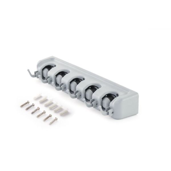 - Dovoljno mesta za sve – Sadrži 5 pozicija za metle i 6 kukica za odlaganje. Kukice su rasklopive i idealne su za odlaganje manjih predmeta poput ključeva, krpica, sunđerčića, četki itd.