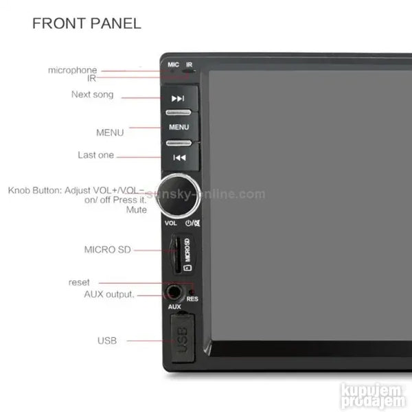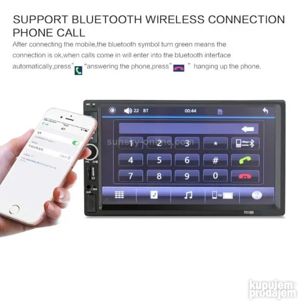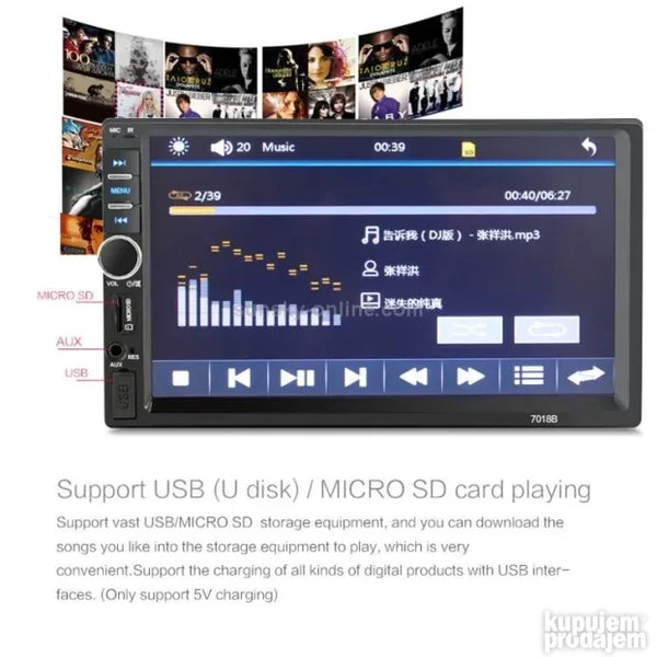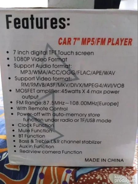 Paket: 1*7018 Car Mp5 plejer 1 * daljinski upravljač 1* uputstvo za upotrebu na engleskom 1 * kabl za napajanje