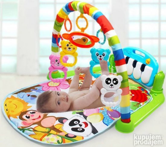Ova podloga za bebe ima mnoge zanimljive funkcije a piano dirke koje proizvode razne zvukove će podstaći bebu da ih udara nožicama i tako vežba.