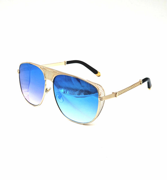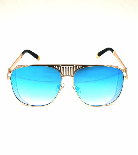 Unisex plave naocare, sa metalnim ramom zlatne boje sa plavim staklima koje imaju vrhunsku zastitu uv 400. Stakla koja su lagana za nosenje po jakom ili slabijem suncu, svakako ce vas uciniti zadovoljnim, ove naocare su napravljene za svaku priliku kako nosenje preko dana tako i za more, putovanje, voznju, setnju…