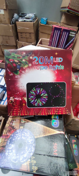Novogodišnje LED lampice stvoriće prazničnu i veselo obojenu atmosferu osvetliće vaš dom i učiniti ga fantastičnim prizorom gledano sa ulice. Novogodišnjim lampicama možete ukrasiti svoj ulaz novogodišnju jelku prozore. Fantastično će izgledati na rukohvatu stepenica ili garnišli a sobi će dati posebnu drugačiju svetlost. Novogodišnja rasveta ima raznobojne LED sijalice obmotane plastičnim crevom. LED sijalice se manje greju od običnih sijalica štede energiju i nisu škodljive za zdravlje i okruženje.