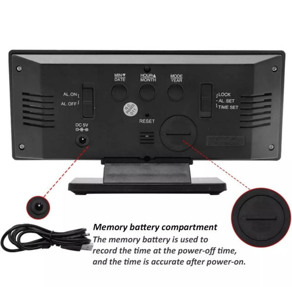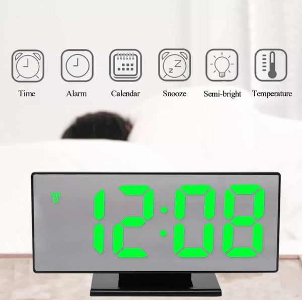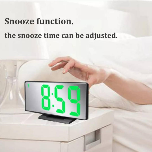 Digitalni LED ogledalo sat sadrži velika bela slova za povećanu vidljivost.