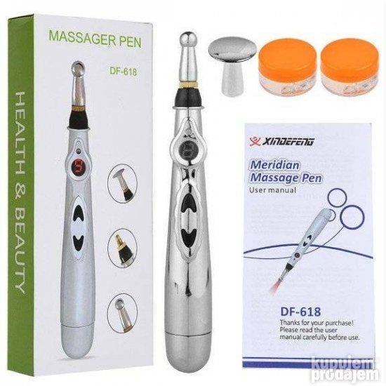 Paket uključuje:1 * Massage Pen – Akupunkturnu olovku1 * glava tipa lopte 1 * glava tipa kupole 1 * priručnik za upotrebu na engleskom jeziku
