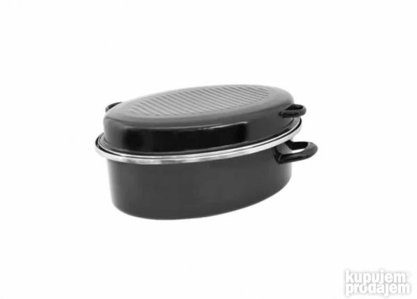 -Emajlirana ovalna posuda za pečenje sa poklopcem.