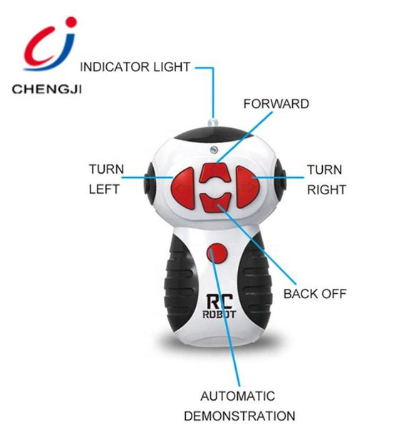 Robot se krece levo, desno, napred nazad, pored zvucnih efekata ima i svetlece led svetlo pa se moze koristiti i u mraku.
