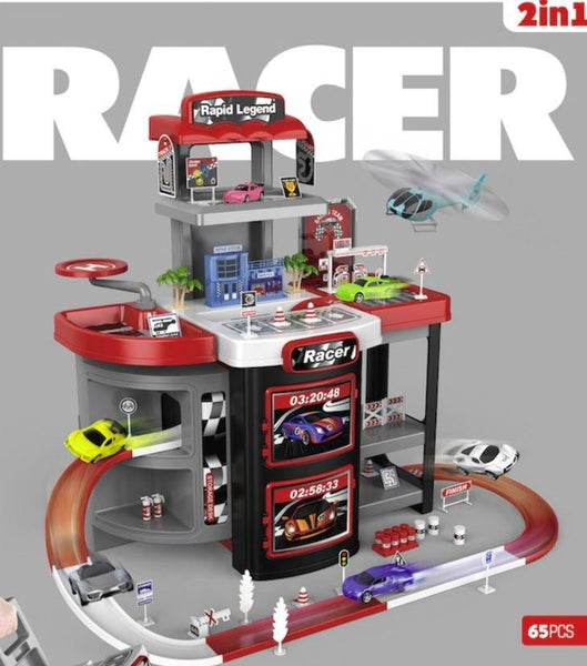 Sjajajn set za malisane. Sadrzi 65 delova. 6 automobila1 Helicopter