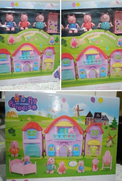 Set se sastoji od kućice za igru, nameštaja, Pepe, Drodža, mame prase i tate praseta.