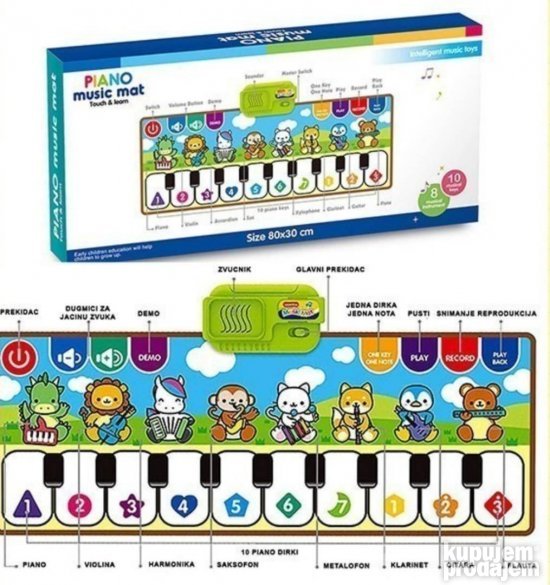 Piano muzicki tepih ima 10 dirki ya sviranje nota i ima opcije da snima i reprodukuje snimljeno.