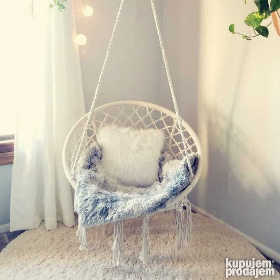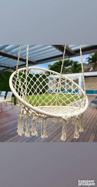 Lagano pamučno pleteno sedište prilagođava se obliku tela. Robusna i izdržljiva konstrukcija idealna za opuštanje i isključivanje. Prikladna za spoljašnju i unutrašnju instalaciju. Ukrasne rese u donjoj strani. Ušteda prostora bilo gde da se postavi. . .