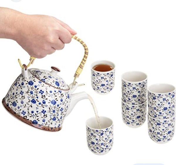 Porcelanski čajnik zanimljivog dizajna, dolazi u kombinaciji bele i plave boje i podseća na kineski porcelan. Materijal koji se koristio vekovima i koji su mnogi postavljali na pijedestal, nije slučajno dobio naziv „belo zlato”. Porcelan je odličan materijal za pravljenje čajnika. Njegova površina dugo vremena ostaje neutralna i stoga je ukus čaja veoma bistar i čist. Još jedna prednost visokokvalitetnog porcelana je sposobnost održavanja temperature pića. Zapremina 900ml. Dimenzije 17,5 x 14 x 7 cm.