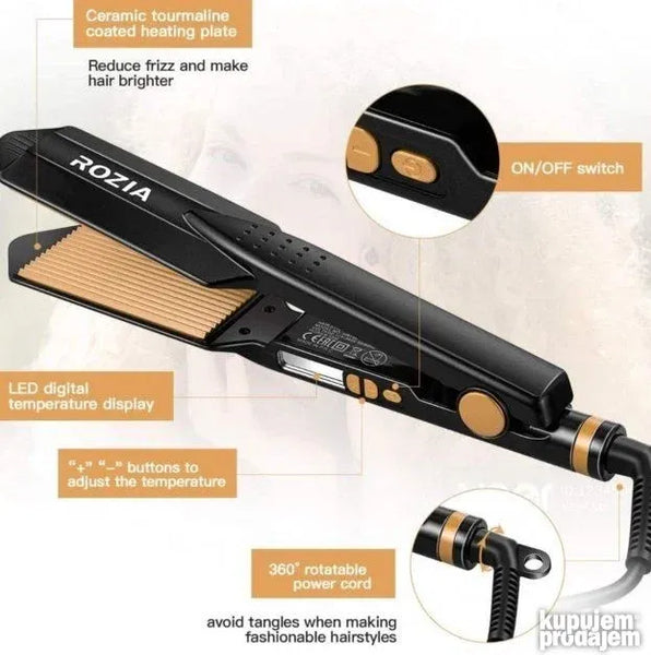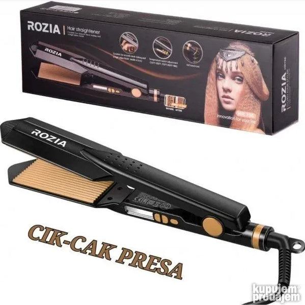 Cik - cak presa za kosu 55 W ; Keramički premaz ; Širina ploče 45cm Podesiva temperatura od 290 ° C do 520 ° C ; Termoregulator ; Indikacija spremnosti za rad ; Prsten za kačenje prese ; Zaštita od opekotina ; Rotacija kabla 360 ° ; Dužina kabla 2 metra Napajanje : 110-240V 50 / 60HZ. Automatsko isključivanje : ( nakon 60 minuta rada ) . Pogodno za : vlasnike salona i kućne korisnike putovanje . . . Vreme zagrevanja : 30 sekundi .