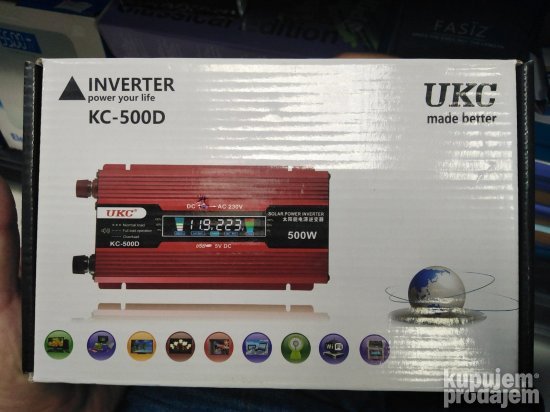 Uređaj pretvara 12v iz izvora istosmerne struje u 220v izmenične. Na taj je način moguće koristiti gotovo svaki uređaj na bilo kojem mestu jer imate izvor izmenične struje od 230v. Idealan je za slabije ili jače audio sastave (zvučnike) laptopove. Monitore televizore (lcd ili crt) ventilatore lemilice i lemne stanice punjače aku bušilica tablete mobilne slabija ili jača prenosna računala fiskalne blagajne rasvetu brijače aparate trimere printere i ostale uređaje slične potrošnje.