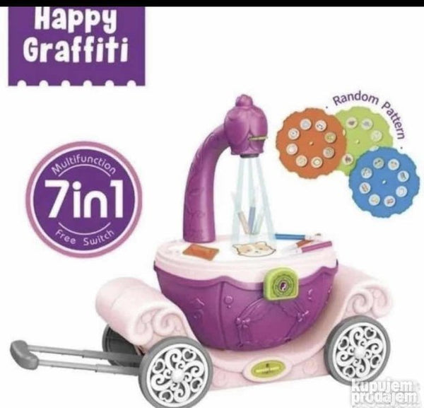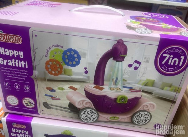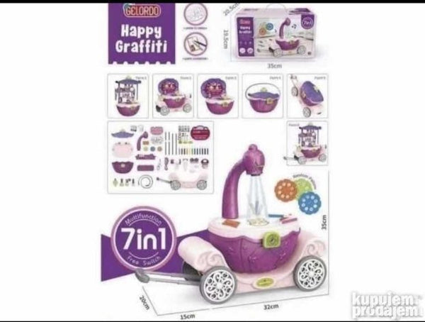 Klasika iz detinjstva sa preokretom! Ovaj 7-u-1 Happi Graffiti kozmetički set i projektor za crtanje je savršen poklon za vašeg malog druga. Kolekcija uključuje simulacijsku mašinu za sušenje veša češalj kopču makaze i još mnogo toga kako bi dete bilo zauzeto. Ovaj set za igru podstiče decu da se uključe u igrive aktivnosti koje su im veoma korisne a takođe i super zabavne. Najbolji je pratilac za celodnevnu zabavnu igru. Pruža maštovitu igru uloga i uvodi decu u svet kulinarstva.