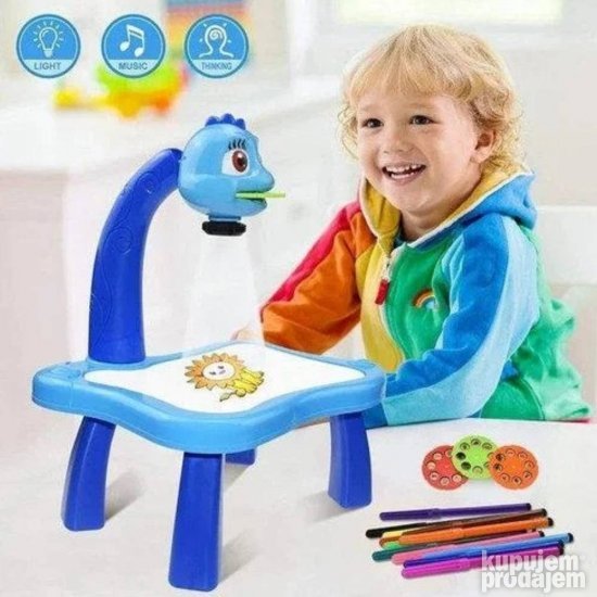 Edukativna igračka koja pomoću lampe i slajdova (krugova) projektuje crtež na hartiji i pomoću koje dete uči da crta i boji razvija motoriku i koordinaciju pokreta.