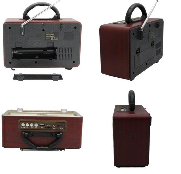 Zanimljiv model retro radia, sa blutut zvucnikom, poseduje ulaz za USB, SD karticu, sadrzi led svetla.