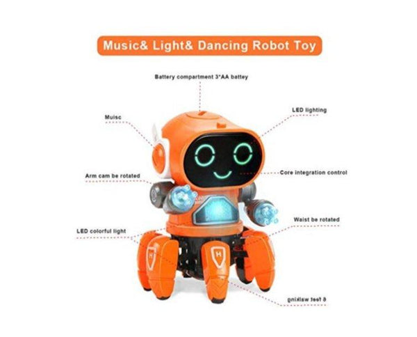 Ova igracka je idealna za zabavu vase dece, robot se moze vrteti igrati , hodati plesati uz pesmu koja se pusta.