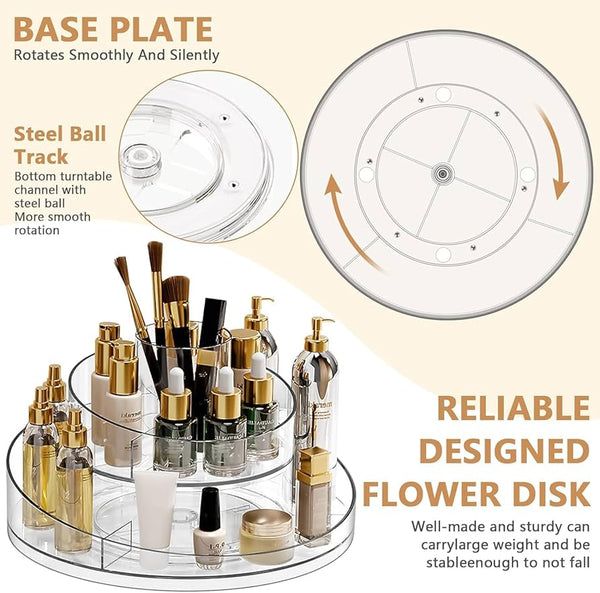 Ovaj praktični stalak za odlaganje je savršeno rešenje za organizaciju vaših kozmetičkih proizvoda, nakita ili drugih sitnica. Sa mogućnošću rotacije od 360 stepeni, omogućava vam lak pristup svim predmetima bez potrebe da ih pomerate.