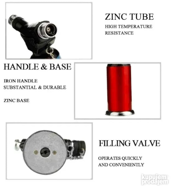 Butanski upaljačMlazni plamen otporan na vetarGasni upaljač koji se može ponovo punitiDuga debljina visoka: 73 * 40 * 113 mmNeto težina: 138 gKapacitet gasa: 5.6gVreme upotrebe: 40minTemperatura plamena: 1100Boja: crna plava crvena *(POSLATO NASUMIČNO)DIISmanjite ili omekšajte materijalModel sitna obrada nakitaPopravke zavarivanja metala korišćenjem lokalnogUpaljeni roštilj na drveni ugaljUpotreba kuhinje KeraČuvati od male deceNikada nemojte bušiti ili stavljati u vatru. Uverite se da je plamen ugašen nakon upotrebe. Koristite pažljivo.