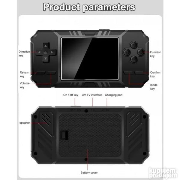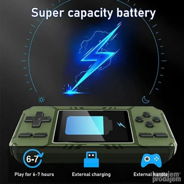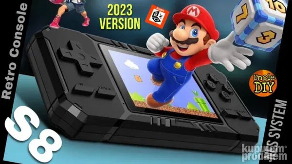 Vratite se u detinjstvo i uzivajte u igri sa Vašim mališanima uz S8 Game BoyNeki od naslova su: Super Mario Mario Bros Mortal Combat Ninja Turtles Contra Alladin Duck Tetris Pacman Tenkovi ali i mnogi drugi popularni naslovi da ne nabrajamo na stotine njih… Pakovanje takodje sadrži: -1x Punjivu bateriju-1x Kabl za punjenje-1x AV kabl ako želite Game Box da povežete i igrate na vašem TV-u i tako uživate u uzbudljivim igrama na velikom ekranu. Dimenzije: 116 x 79 cmMaterijal: PlastikaEkran: 3 inch TFT ekran u boji