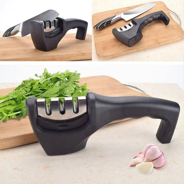 Trostepeni sistem oštrenja zajedno sa tocilom visokih performansi, daje mogućnost oštrenja od najgrubljeg sečiva, preko slabijeg, do najfinijeg. Veoma jednostavan za korišćenje, čak i za levoruke. Drška je sastavljena od bezbedne i izdržljive ABS plastike sa prenosivim sistemom čeličnog sečiva, za veoma lako čišćenje i održavanje.