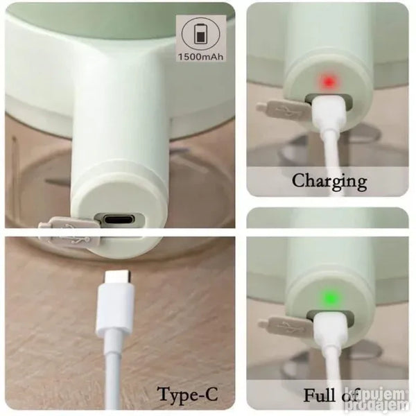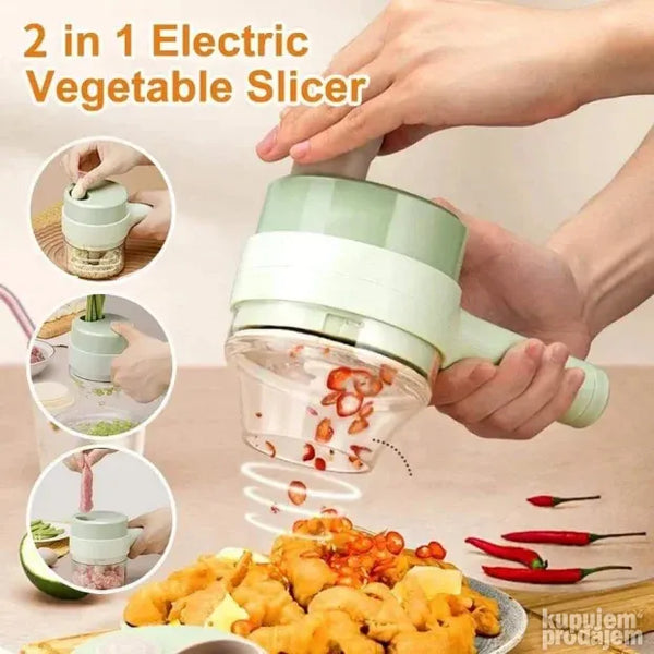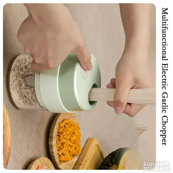 Secko multifunkcionalni 2 u 1Karakteristike:1. Secko multifunkcionalni 2 u 1 je ručni električni rezač povrća: ručni električni rezač povrća uključuje 2 u 1 funkcije za sečenje drobljenje pravljenje paste. Čini sastojke gušćima a finoća se može koristiti kao dodatak ishrani za bebe.2. Otvoreni priključak za hranjenje: sekač za hranu. Takođe je veoma zgodno dodati sastojak eliminišući dosadne korake otvaranja i uvrtanja poklopca a dugački sastojci kao što su spargle spagete luk se mogu direktno ubaciti.3. Udoban rukohvat: Multifunkcionalni sekač za povrće koji koristi ABS PC materijal za hranu i sečivo od nerđajućeg čelika izdržljiv i otporan na koroziju. Prekidajući režim lebdenja i klika tradicionalne električne paste od belog luka ergonomski dizajn ne umara vaše ruke.4. Čišćenje jednim ključem: Cela mašina se ispere u otvor za hranjenje se dodaje deterdžent za početak sa jednim ključem a može se oprati tekućom vodom mešanjem pet sekundi.5. Višenamenski: seckanje belog luka đumbira čilija kikirikija oraha itd. Pravite komplementarnu hranu sokove mlečne šejkove deserte itd. Specifikacija Materijal: ABS + PP + PC + nerđajući čelik Boja: zelena Veličina: 21 x 10 x 8 cm Težina: 480 g. Kapacitet: 200 ml Snaga: 40 V Paket uključuje: 1× električni set za sečenje povrća. Lako pripremite različite sastojke za kuvanje kako biste uštedeli vreme i trud. Dizajn ulaza za hranu pojedinačna hrana ili sastojak sa dugačkom trakom može se umetnuti direktno sa otvorenim ulazom za uvođenje radi uštede napornih koraka otvaranja i okretanja poklopca. Pokrijte šipku za presovanje da sprečite prskanje materijala za hranu. Baterija velikog kapaciteta i USB punjenje. Ugrađena baterija od 1200mAH može se koristiti dugo vremena sa jednim punjenjem. USB punjenje i bežični dizajn mogu se slobodno kretati bilo gde u kuhinji. Lako za čišćenje. Cela mašina podržava pranje u otvor za hranjenje se dodaje deterdžent za početak sa jednim ključem nakon mešanja 5 sekundi da biste ga oprali vodom. Prenosivi i lagani. Udoban za držanje i ne umaraju ruke sa ergonomskim dizajnom laganim ručnim dizajnom za laku upotrebu jednostavan i efikasan. Savršeno za beli luk paprike meso luk šargarepu i još mnogo toga. Pogodno za dom putovanja kampovanje i aktivnosti na otvorenom.
