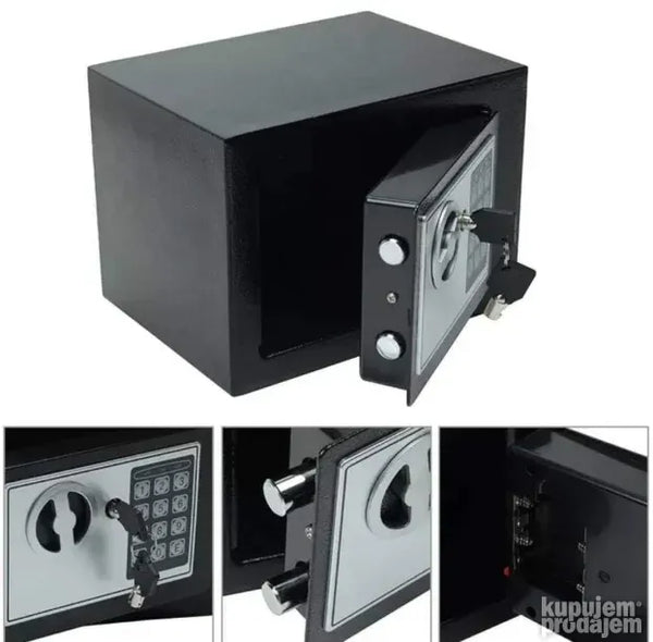 SEF Sigurnosni sef sa sifrom - Metalni Sef - Sef Metalni sef sa sifrom + ključ u slučaju pražnjena baterije. U pakovanju dolazi 4 AA baterije. Uz sef dolaze i sigurnosni šrafovi koji Vam omogućavaju da sef prišvrstite za zid. Lako se podešava šifra. Novo u original kutiji. Odlican kućni kancelarijski ili hotelski sef jednostavan za upotrebu pouzdan i siguran. Sef je standardnih dimenzija dovoljnih za čuvanje vrednosti. Pruža dodatnu sigurnost vašeg boravišnog prostora. Sef je moguće sa unutrašnje strane fiksirati šrafovima za podlogu.