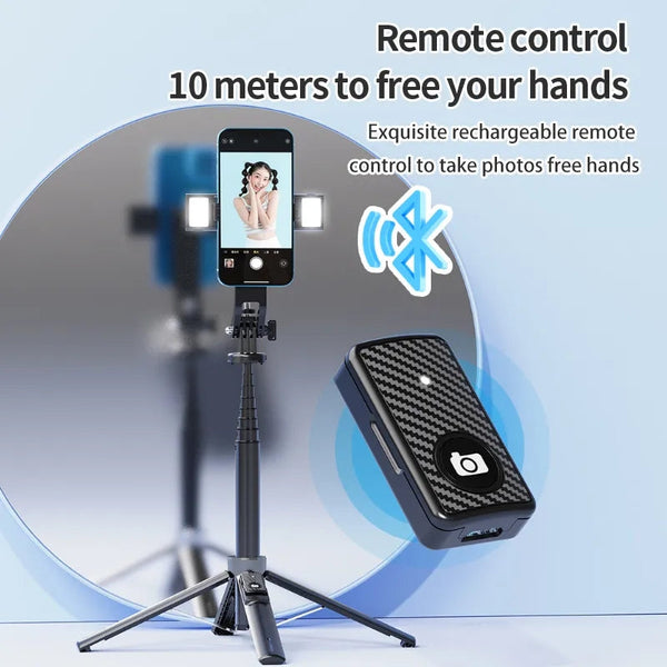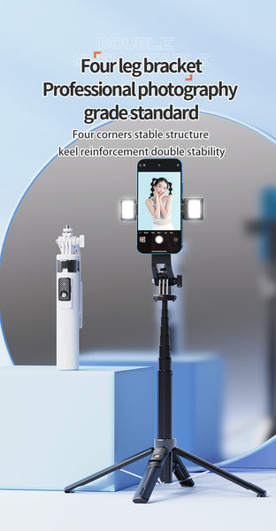 Bluetooth daljinski stativ sa dvostrukim svetlima za punjenje, svetlo ima tri boje (belo svetlo, prirodno svetlo, toplo svetlo), a temperatura svetlosti se može podesiti u 9 nivoa. Selfi štap je nadograđena verzija, kvadrapodi su stabilniji od tradicionalnog stativa za telefon, mini prenosivi, oslobađaju ruke da radite bilo šta. Postolje za stativ za telefon se može podesiti pod više uglova, snimanje je lako, može se koristiti za striming uživo, učenje na mreži, podučavanje, selfije, gledanje video zapisa, sastanke, snimanje vašeg kućnog života, veoma zgodno. daljenost daljinskog upravljača za selfi stativ 10 M, velika brzina povezivanja i niska cena energije, može se koristiti dugo vremena, baterija je zamenljiva, kompatibilna sa iPhone i Android pametnim telefonom.