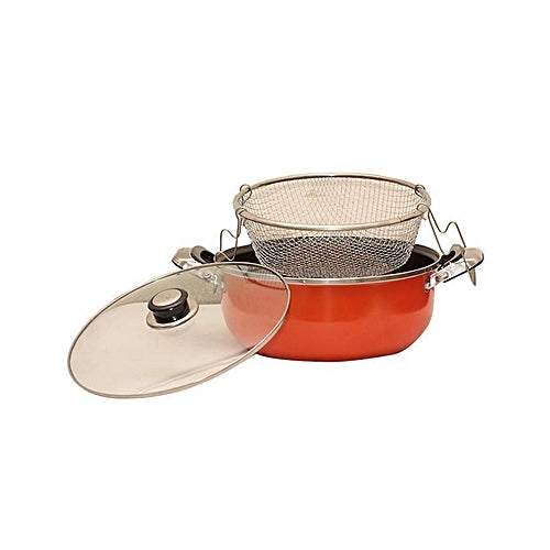 Fantastican set 3 u 1 se sastoji od serpe koja je napravljena od materijala za koji se ne lepi hrana, kao i od poklopca i friteze u kojoj mozete prziti omiljeno povrce ili meso, takodje mozete ovaj set koristiti za kuvanje paste ili povrca tako da ce odmah nakon kuvanja moci na jednostavan nacin da ocedi kao i za kuvanje na pari.  Obim serpe je 28cm.