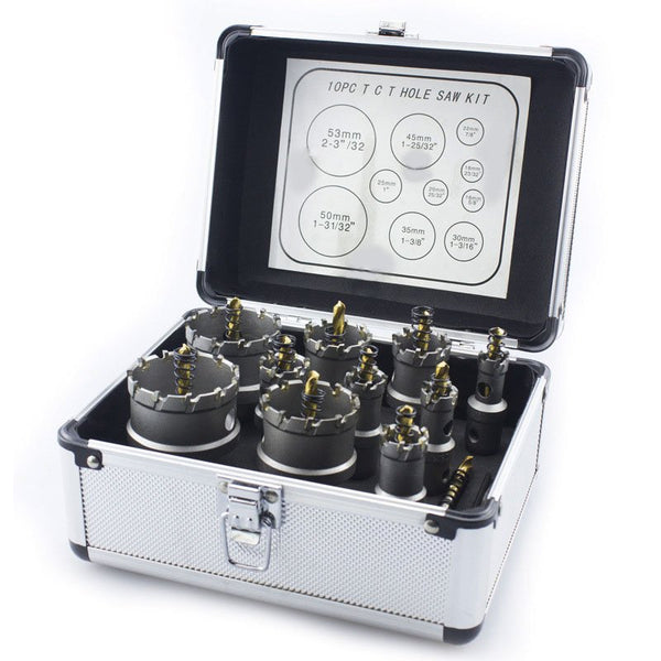 - 10 kruznih testera sledecih precnika: 16mm, 18mm, 20mm, 22mm, 25mm, 30mm, 35mm, 45mm, 50mm, 53mm