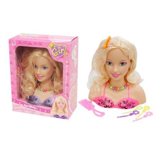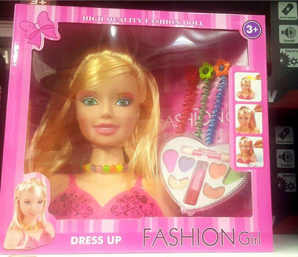 Glava barbi lutke sa šminkom i pramenovima kose, odlična zabava za male princeze koje vole da se igraju sa šminkom. Uživaće puno u beskrajnoj igri.