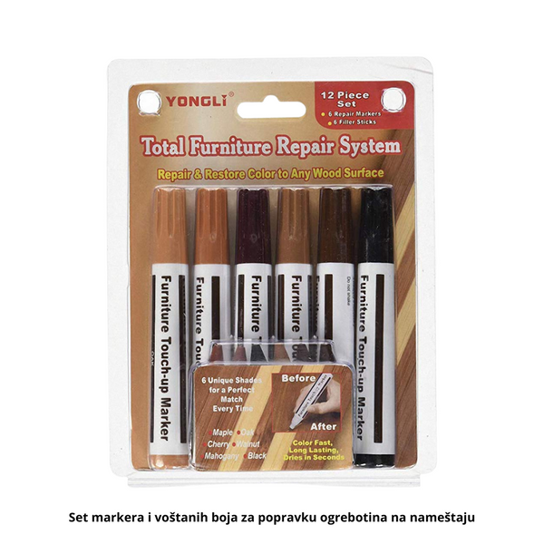 Iskoristite trenutnu akciju i poručite odmah Set markera i voštanih boja za popravku ogrebotina na nameštaju i uklonite sve ružne ogrebotine sa drvenog nameštaja i učinite ga kao novim!